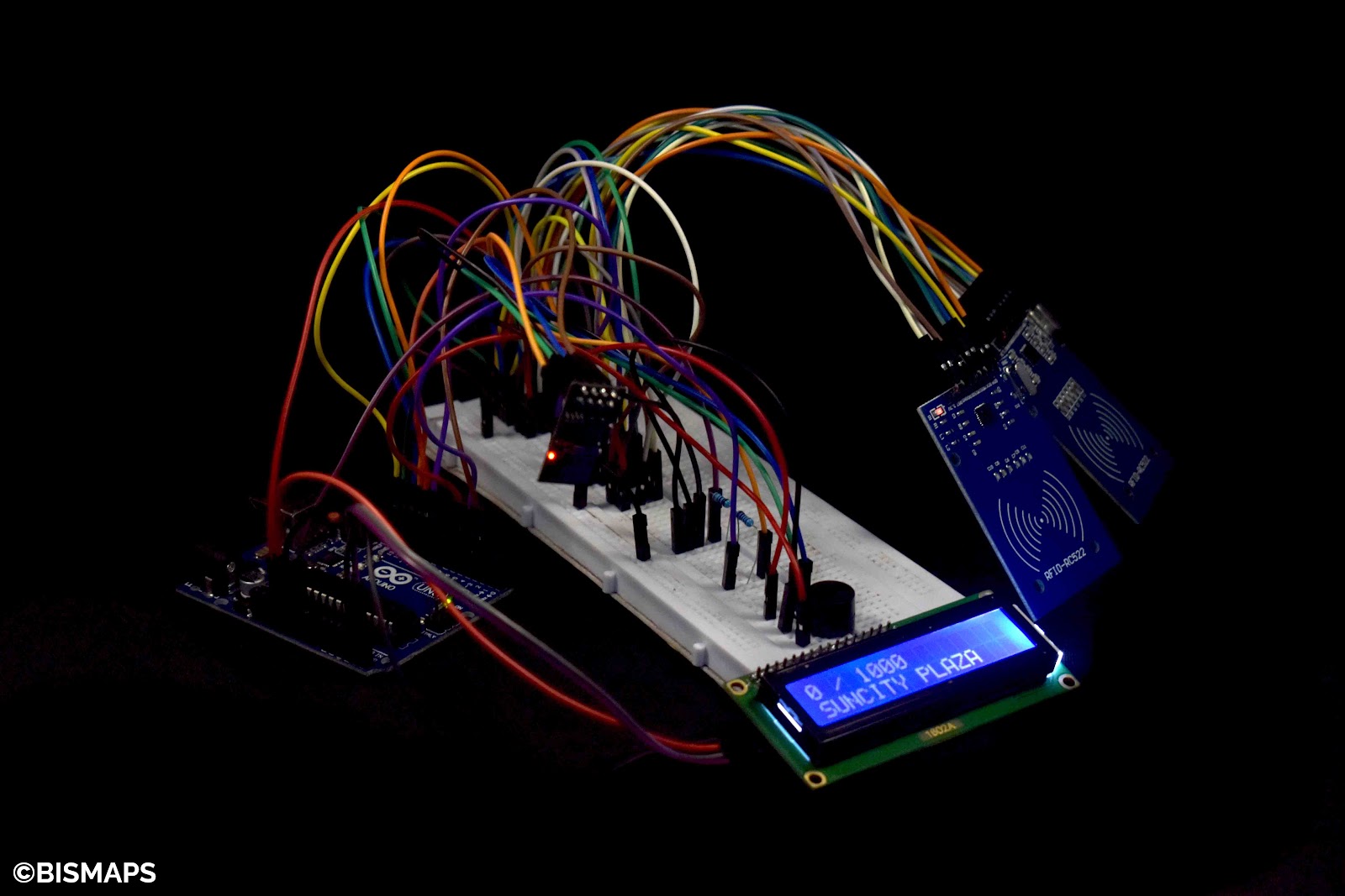 Internet of Things product that counts tapped identity card to count people inside a building.